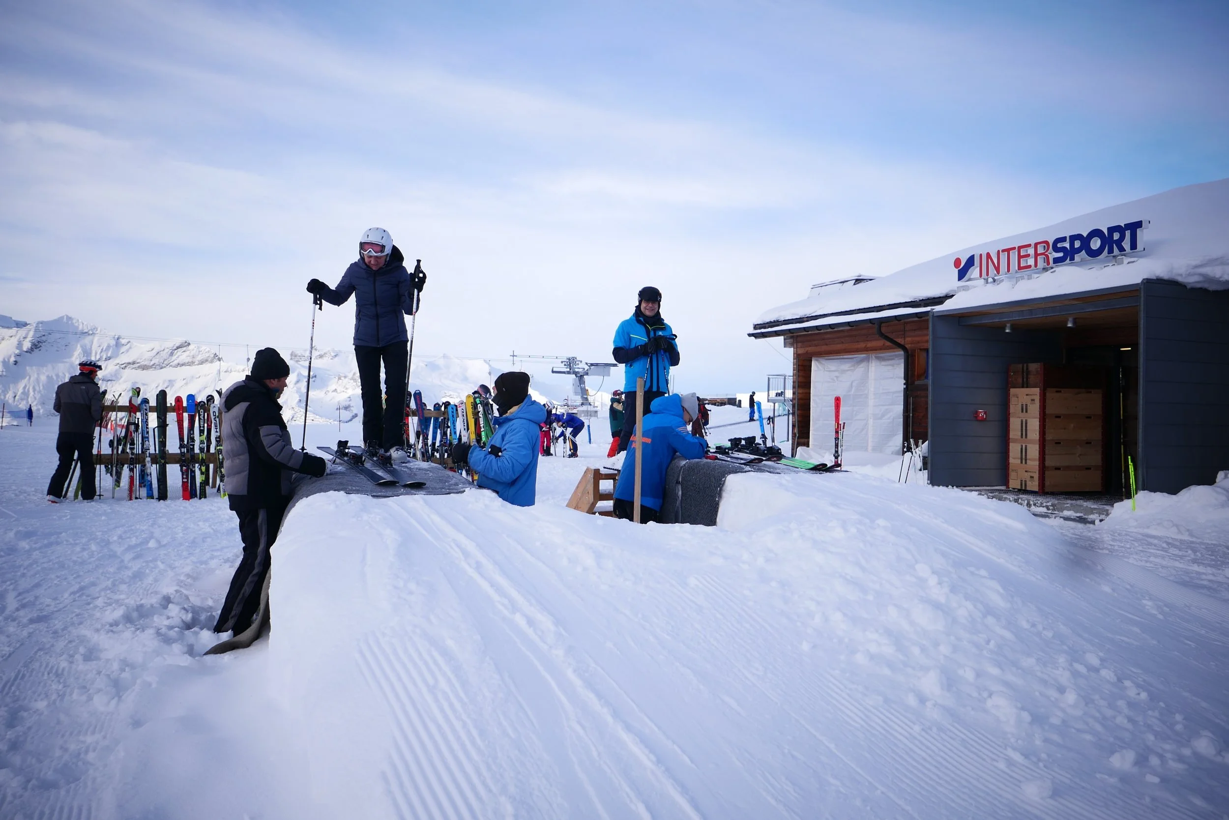 Direkt an der Bergstation, perfekt zum spontanen Testen vor der Talabfahrt.